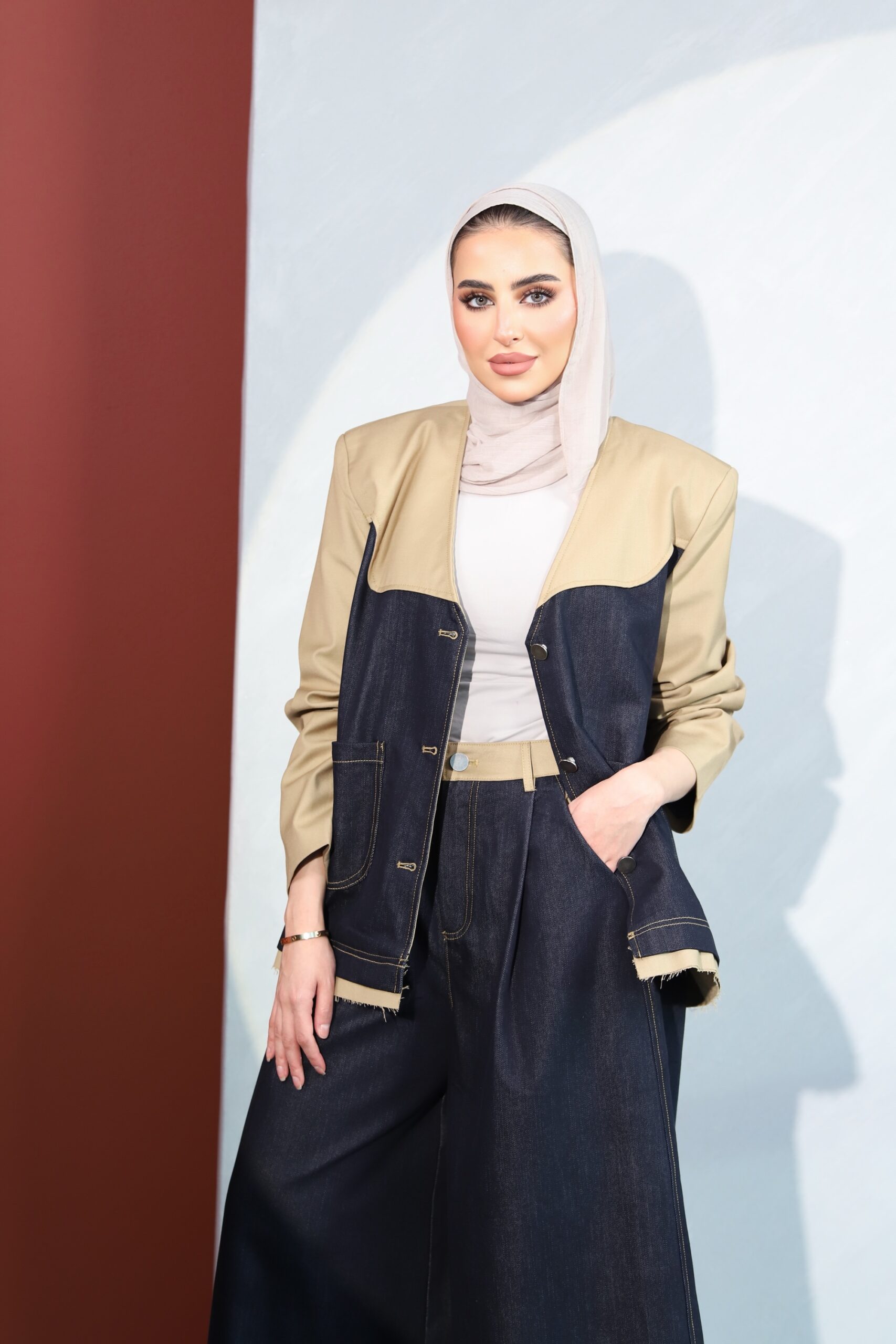 الموديل لابسه سمول ، طول البنطرون ٤٣ انش ، المقاس راهي