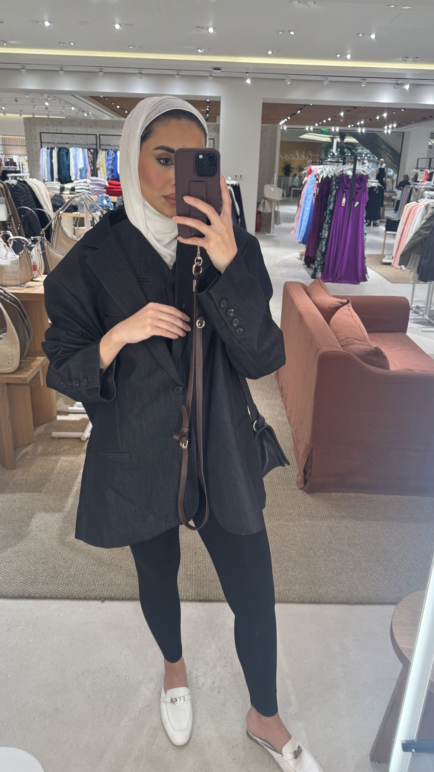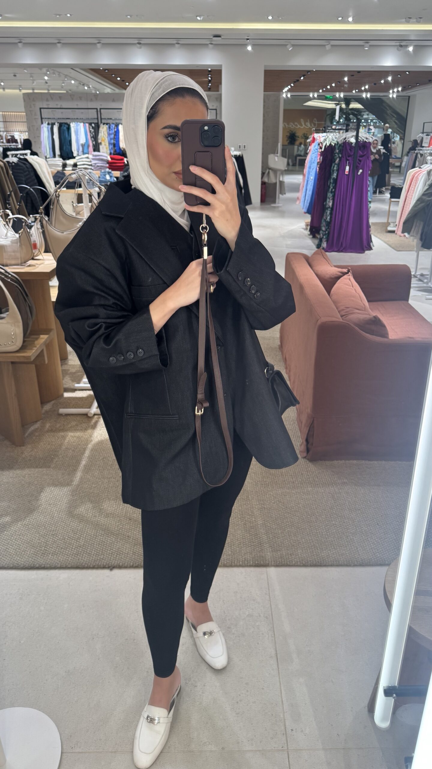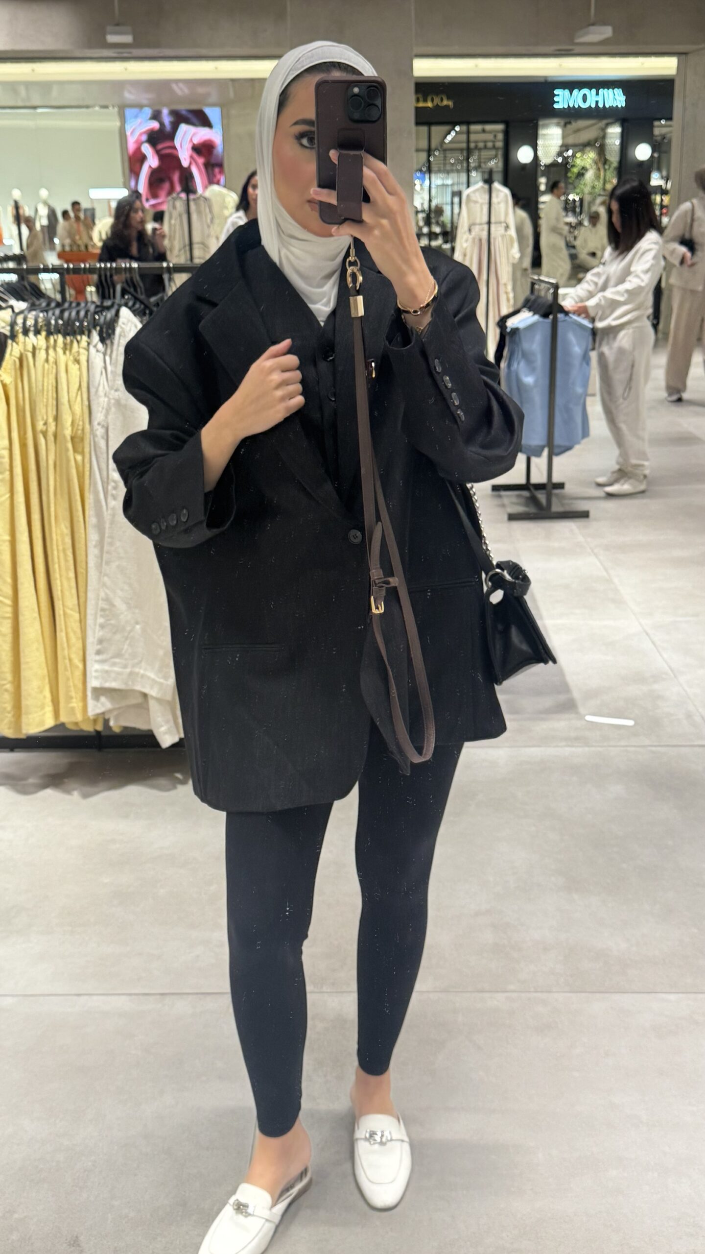الجاكيت freesize طوله ٣٤ انش, الڤست مول وميديم فيه سير من ورا ، الموديل لابسه سمول