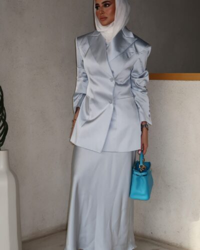 0-Pastel blue silk dress set