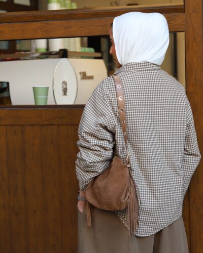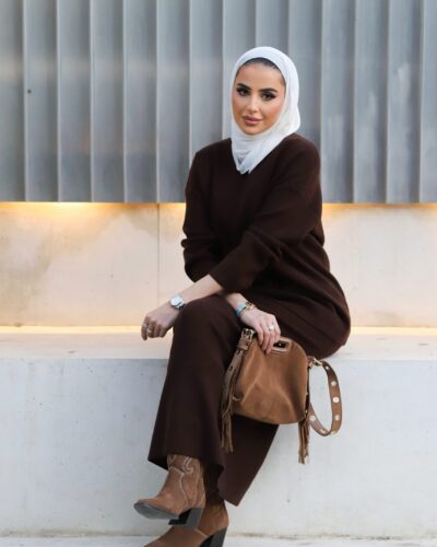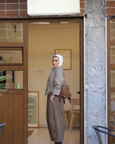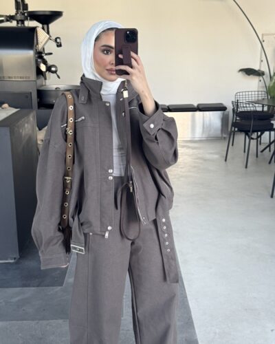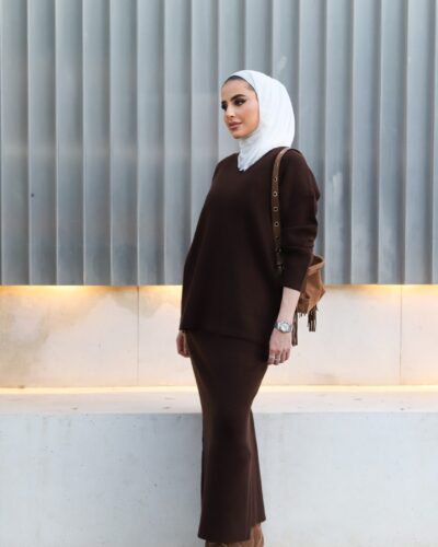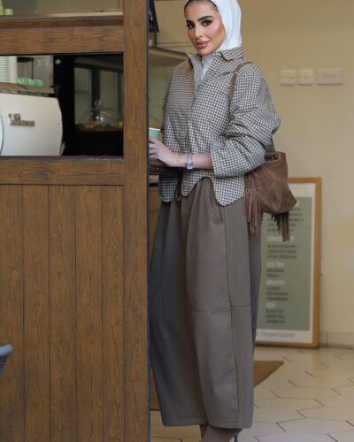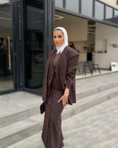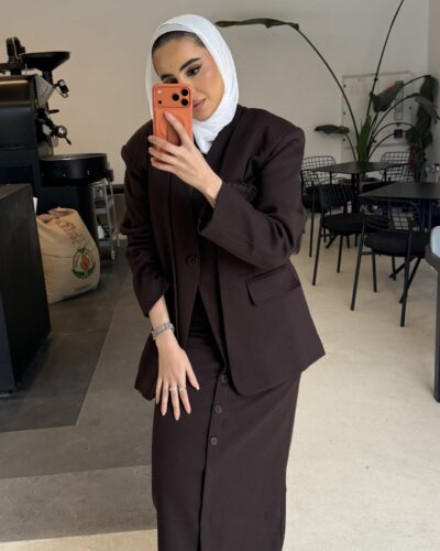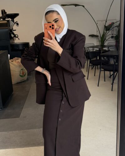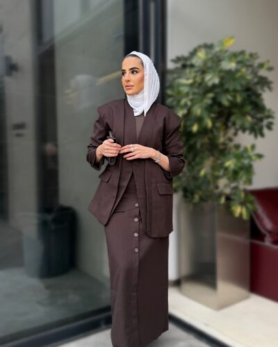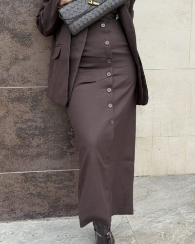 0-Brown oversized blazer with pencil skirt