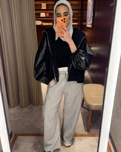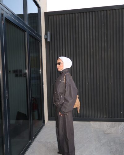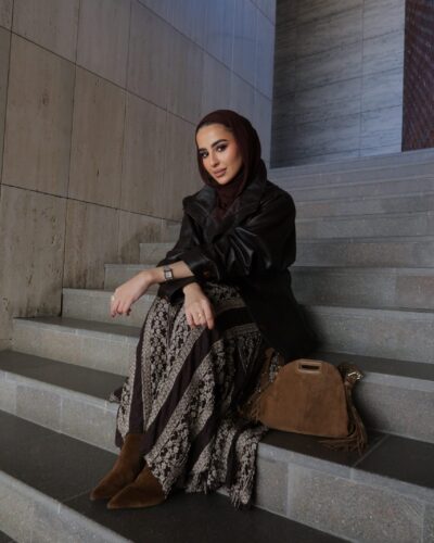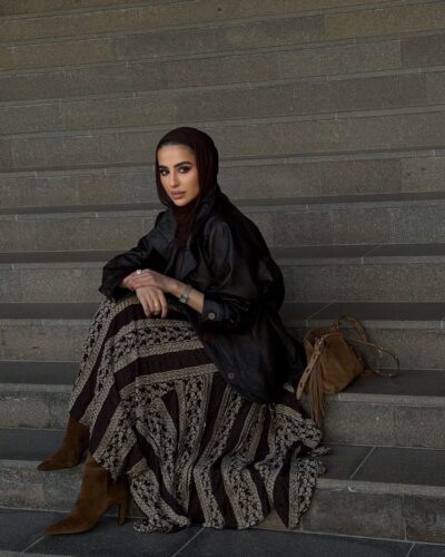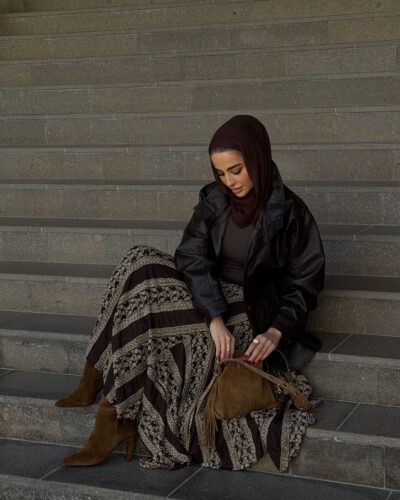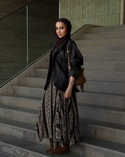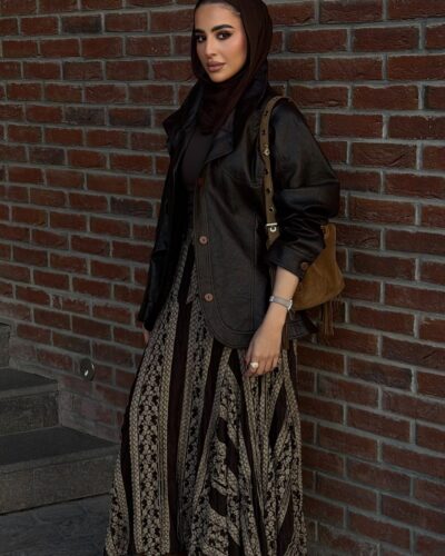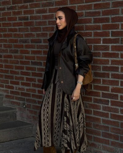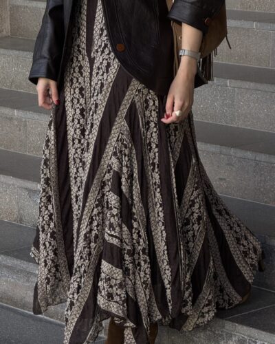 0-A Leather jacket with lace skirt