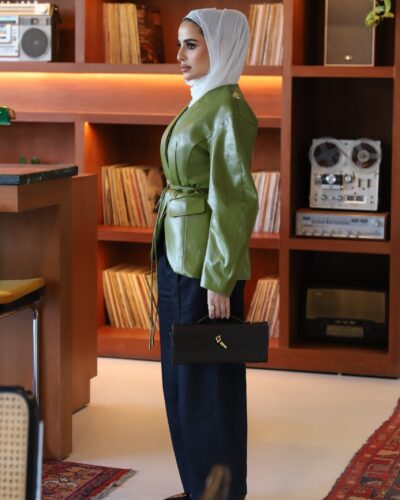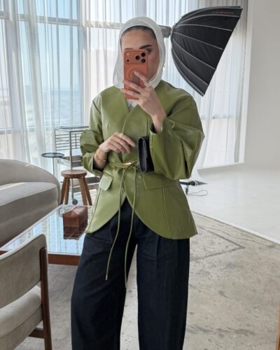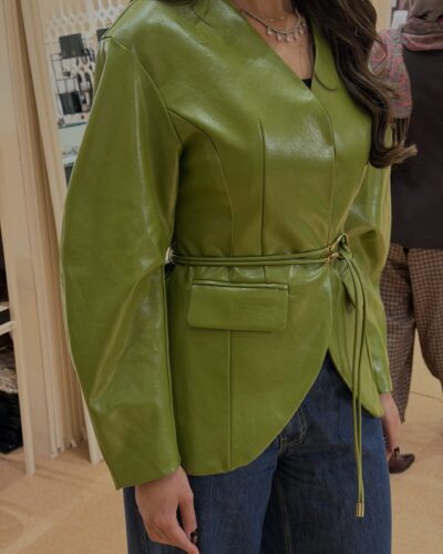 0-Olive leather blazer